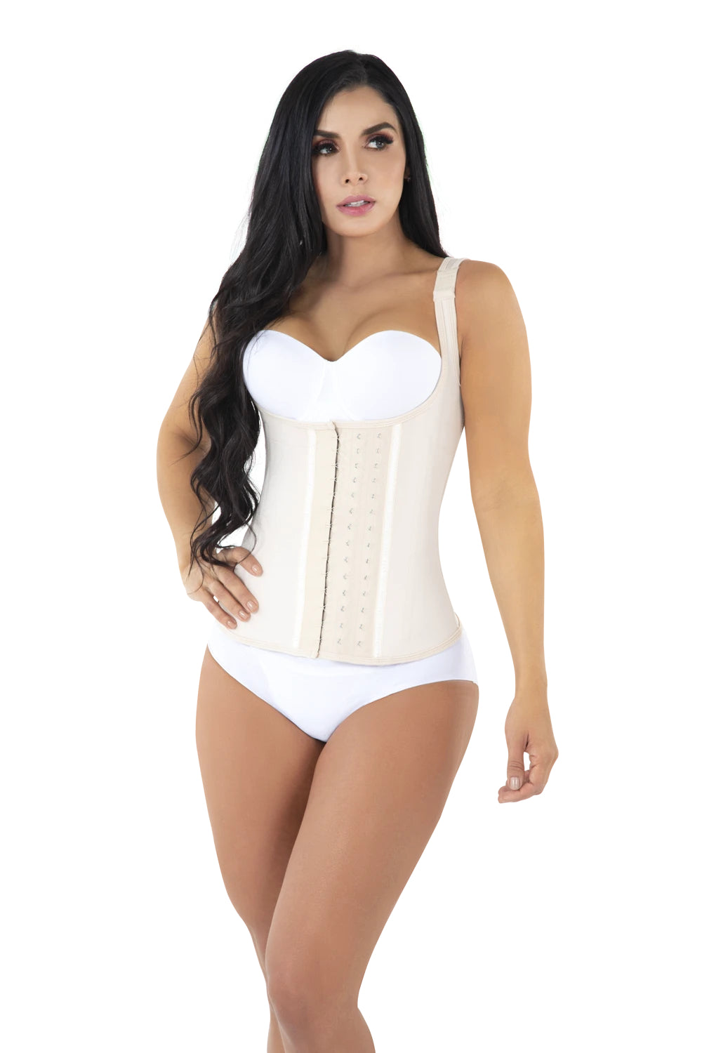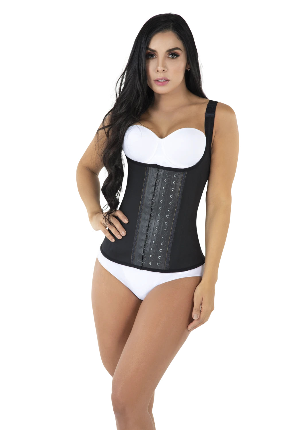 - Metal Brackets and flexible boning system to keep garment in place.