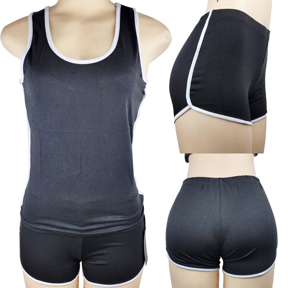 Womens Top Bottom Activewear Tank Top Shorts Set Cotton Sports Good Stretch